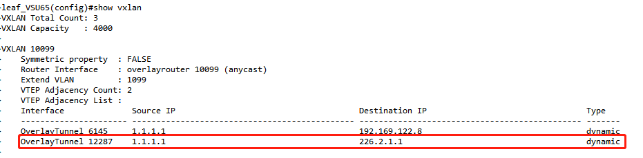 OverlayTunnel 12287    1.1.1.1          226.2.1.1               dynamic