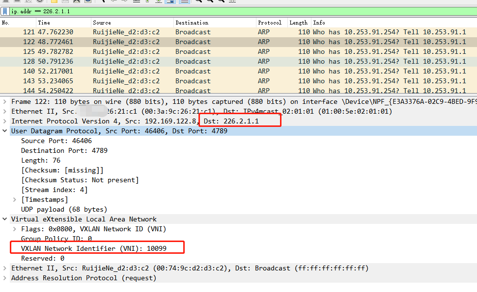 mcast-group 226.2.1.1  # 将二层vni与组播组进行绑定
