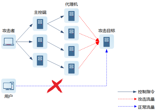 DDoS攻击(Distributed Denial of Service Attack,分布式拒绝服务攻击)的前身是DoS攻击(Denial of Service Attack,拒绝服务攻击),是指一种通过各种技术手段导致目标系统进入拒绝服务状态的攻击。